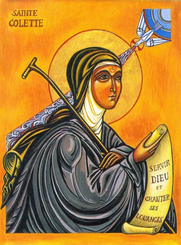 Hija de un humilde carpintero de la abadía de Carbia, en Francia, Coleta ingresó en el convento de la Tercera Orden Franciscana. Tras varios años de oración y vida austerísima, inició y logró la reforma de las monjas clarisas, a fin de recuperar el primitivo ideal. Murió en Gante, ciudad de Flandes, en la actual Bélgica, el año 1447.
