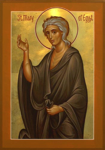 Nació en Egipto en el siglo V. A los doce años se fugó de su casa y en Alejandría inició una vida disipada que duró diecisiete años, hasta que un día, en Jerusalén, delante de una imagen de la Virgen María prometió cambiar. Cruzó el Jordán y se internó en el desierto para hacer penitencia por sus pecados. Así pasó cuarenta y siete años sin ver a un ser humano, hasta que llegó al desierto un monje llamado Zósimo, quien, a pedido de María le llevó la comunión un Jueves Santo. Al año siguiente, el Jueves Santo, la penitente murió.